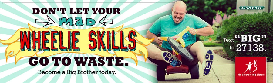 In 2008, Big Brothers Big Sisters of Kansas City had a waiting list of hundreds of boys in need of a male mentor. To address this problem, we crafted a print, outdoor and radio campaign that appeals to the 10-year-old boy that lives inside every man, and adopted texting technology that made signup so easy a kid could do it. In just a few months, we flipped the script for BBBS-KC; at the end of our campaign, they had a waiting list of hundreds men in need of a Little to mentor.